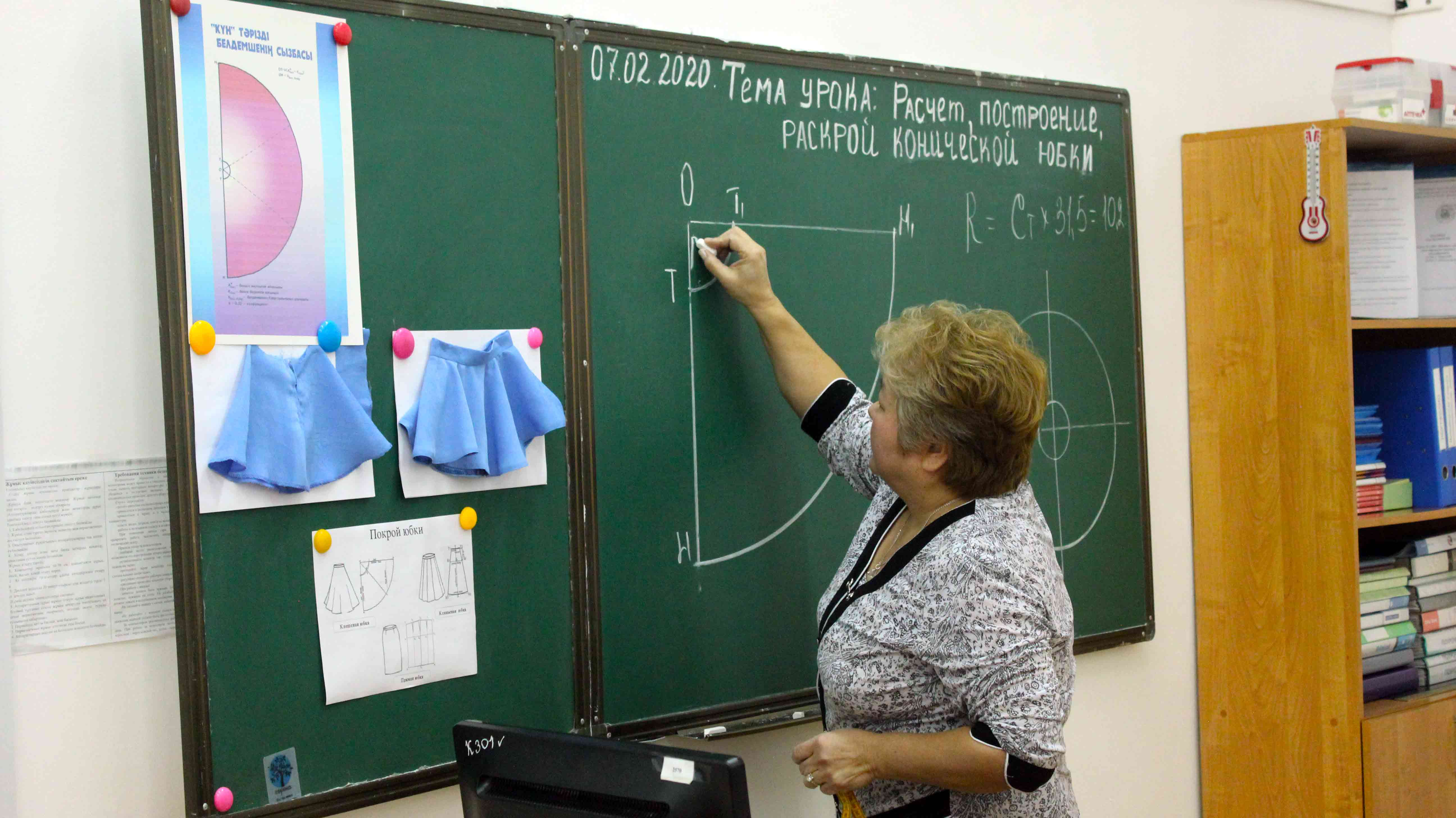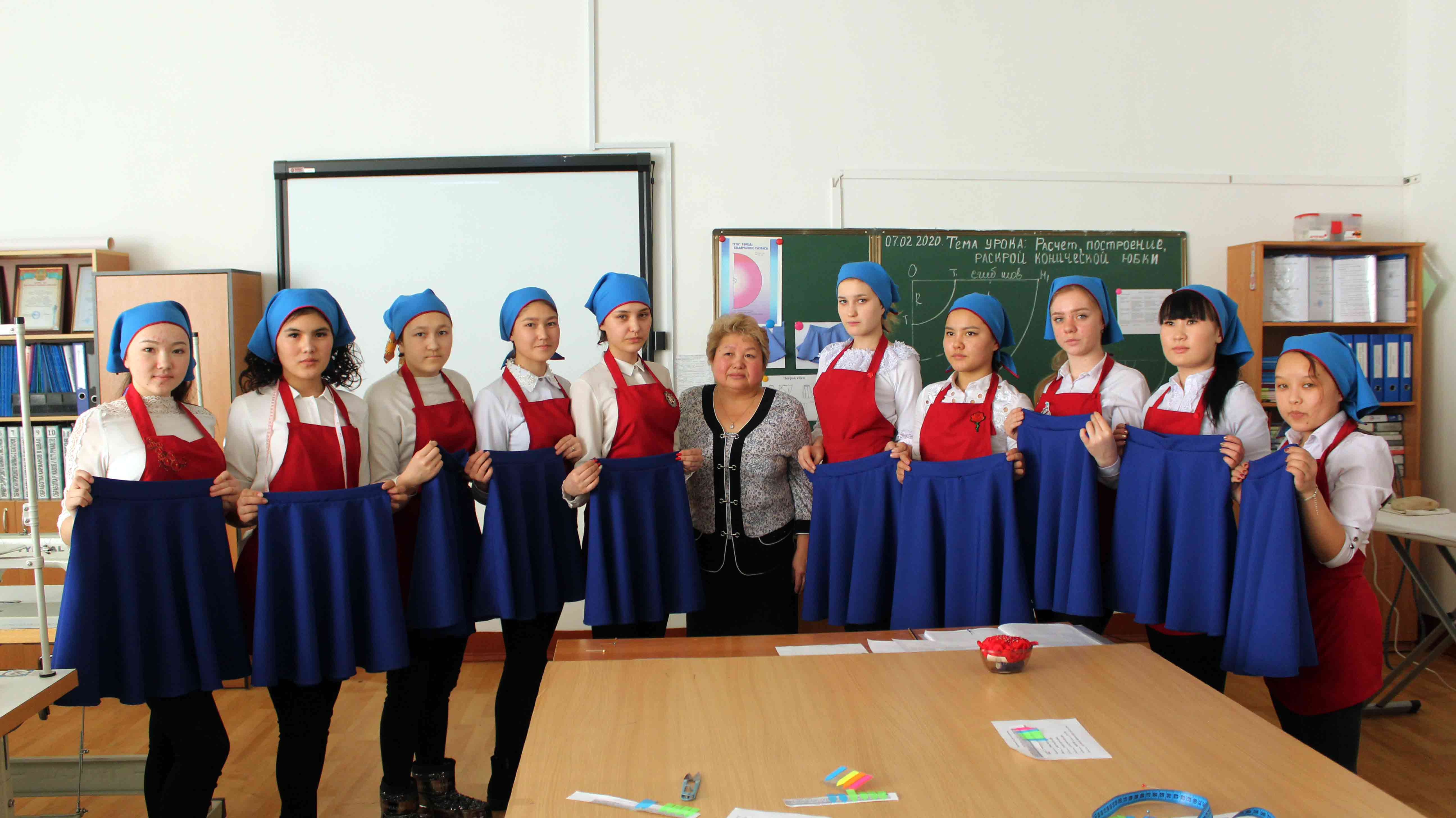 07.02.2020 жылы 1211062 - Тігінші мамандығы бойынша С 21 ПУ тобында өндірістік оқытудың ашық сабағы өтті, шебер — Ундизова Разия Мухаметжановна. Сабақтың тақырыбы: Конустық юбканы есептеу, салу, кесу және құру.