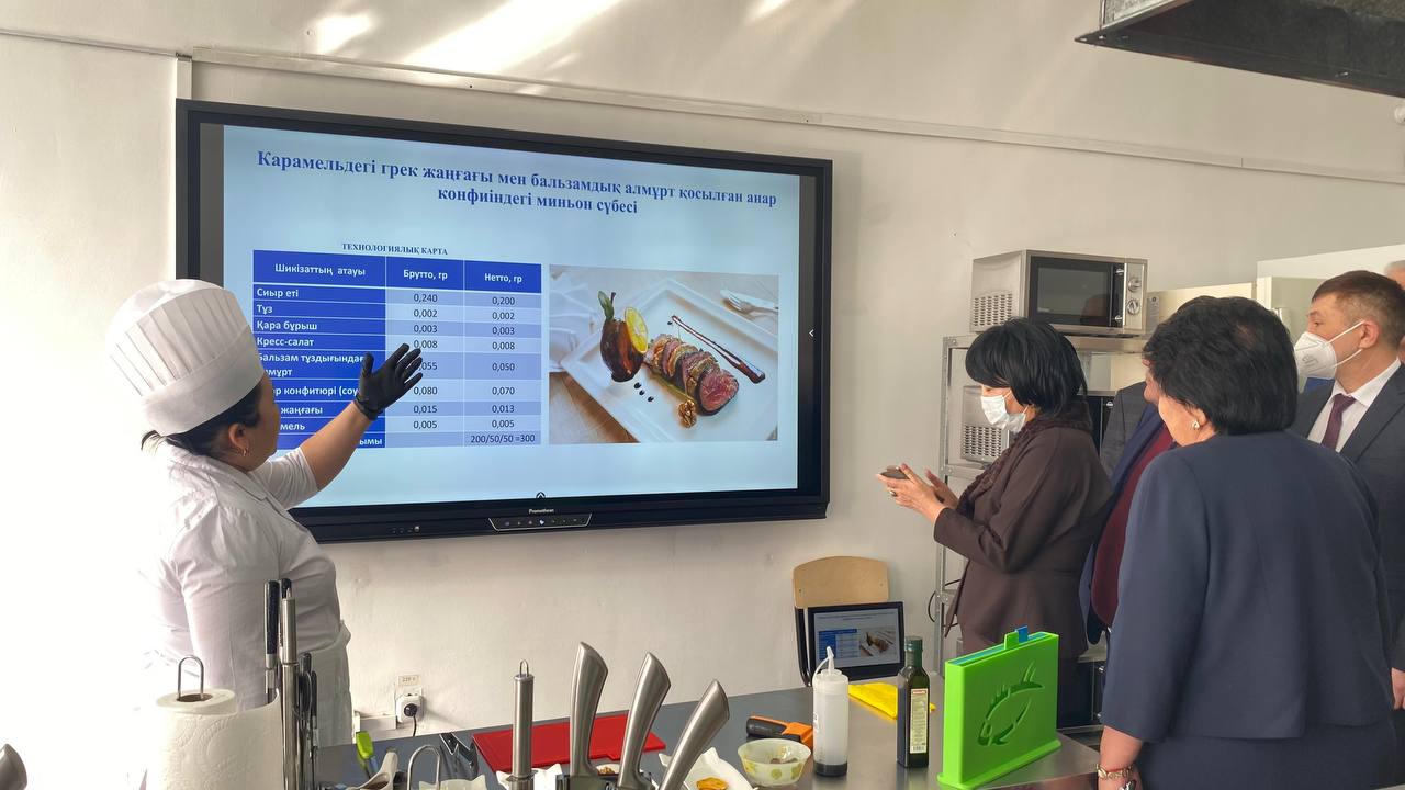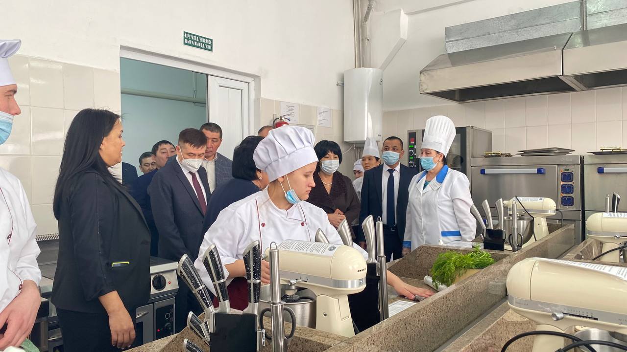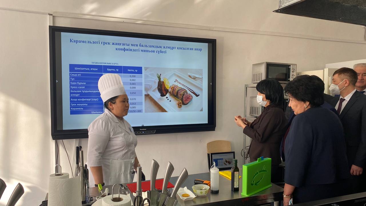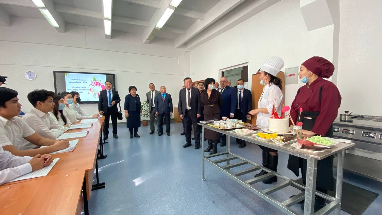 «Жас маман» жобасы аясында колледж базасында құрылған «Тамақтандыруды ұйымдастыру» құзыреттілік орталығының жұмысымен танысты. Тәжірибелік алаңға қатысушы-қонақтар колледждің материалдық-техникалық базасымен танысып, іс-шара бойынша өз ойларымен бөлісті.