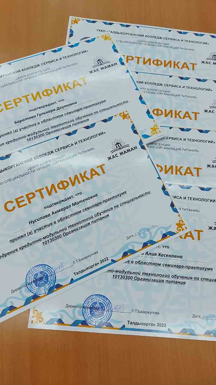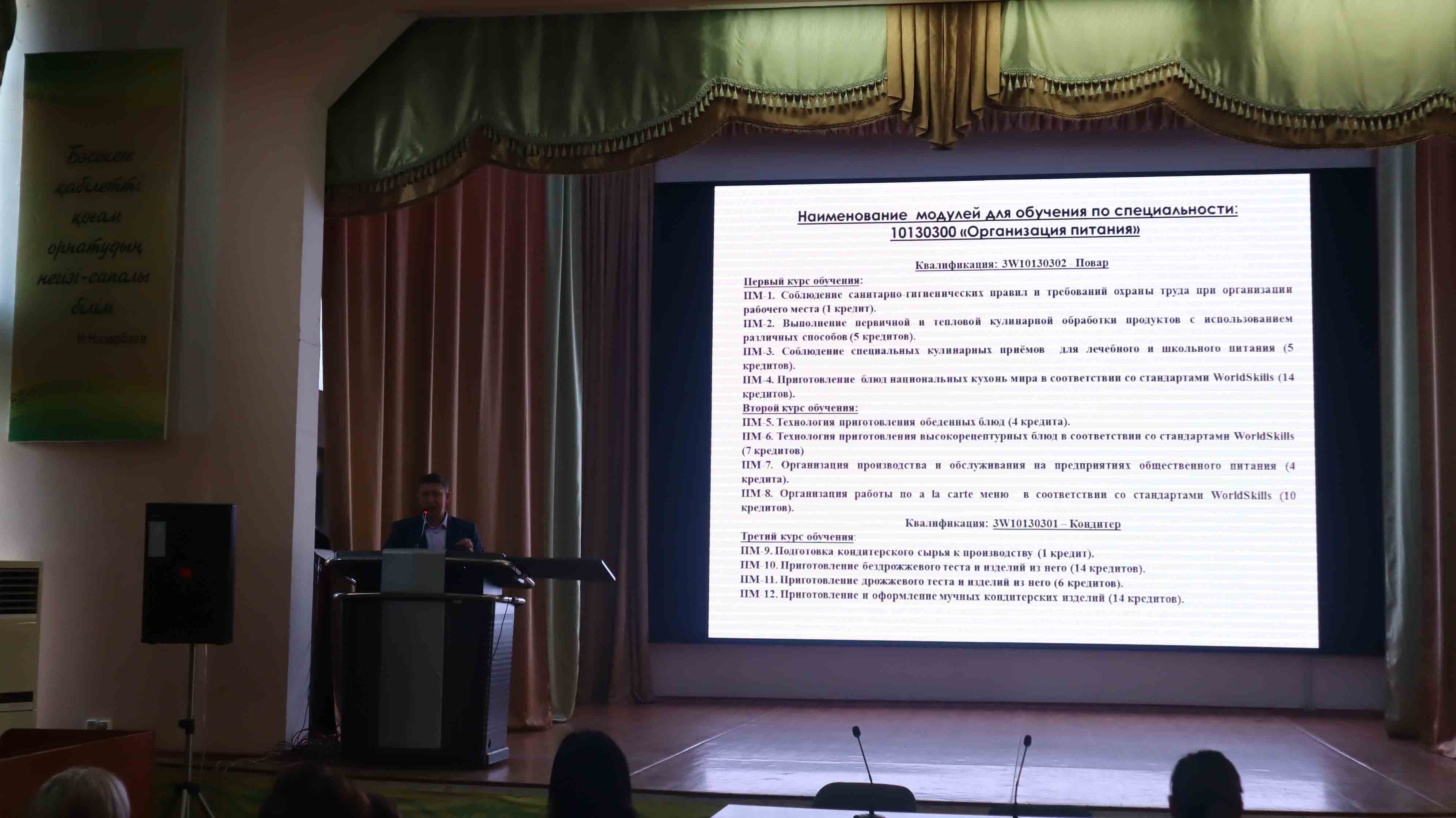 Талдықорған сервис және технологиял колледжінде «Құзыреттілік орталығы» базасында облыстық оқу-әдістемелік бөлімінің қатысуымен "Тамақтандыруды ұйымдастыру 10130300 мамандығы бойынша оқытудың кредиттік-модульдік технологиясын енгізу» тақырыбында облыстық семинар-практикум өтті.