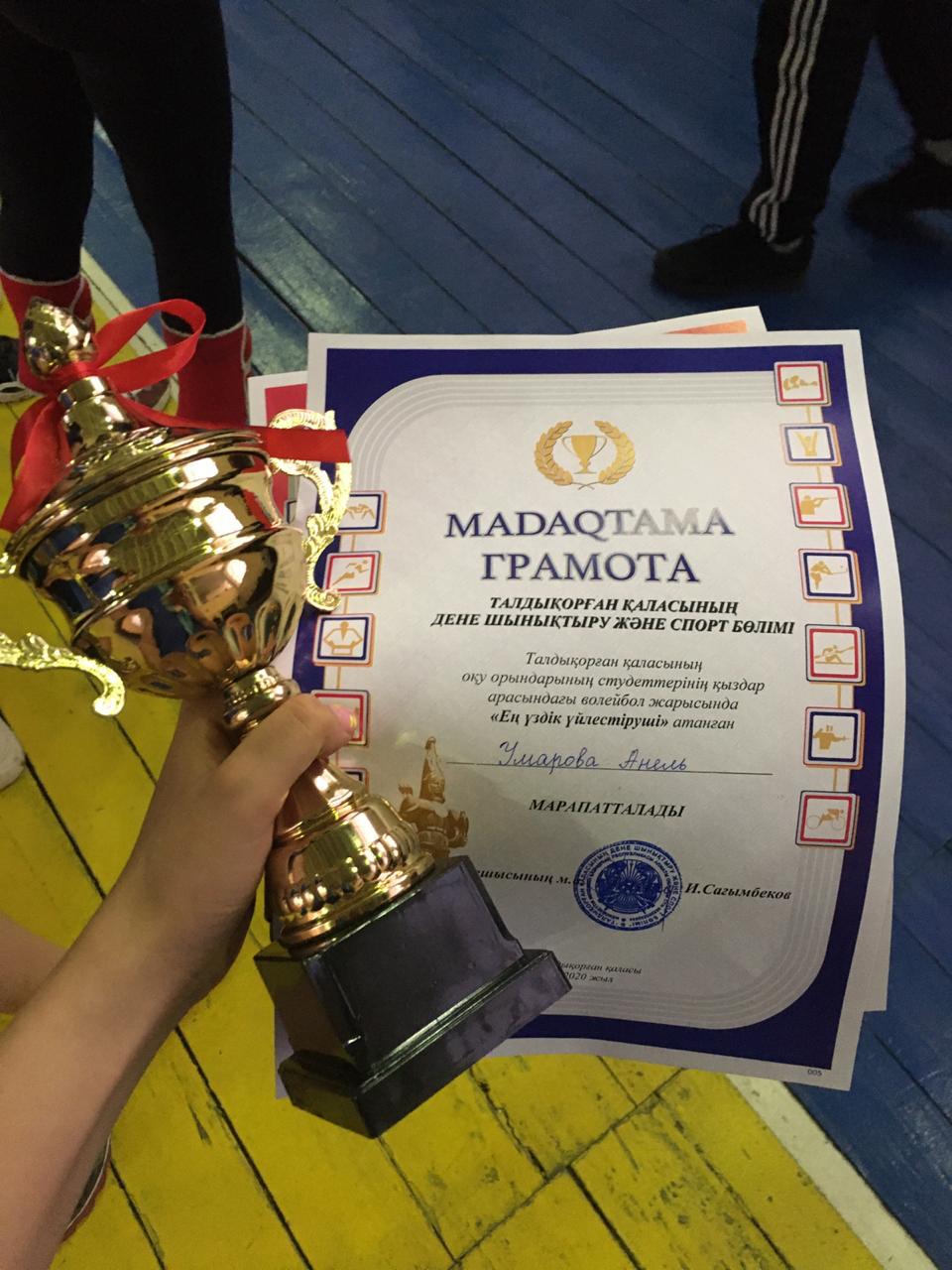 Талдықорған қаласы бойынша колледждер арасында өткен волейбол жарысында, Талдықорған сервис және технология колледжінің білімгері Умарова Анель «Үздік ойыншы» атанып, қыздар командасы жүлделі 3-ші орынға ие болды. Құттықтаймыз!