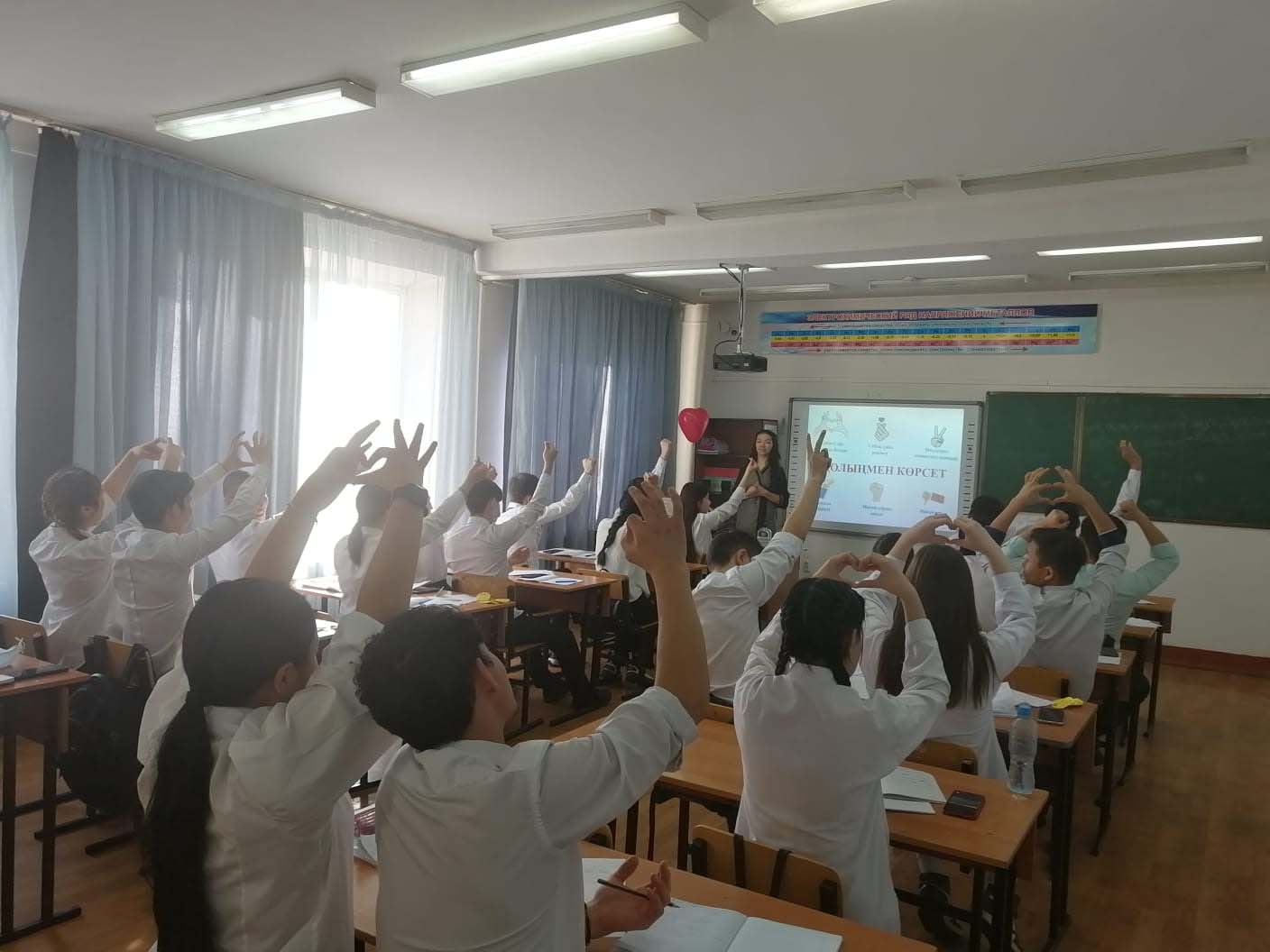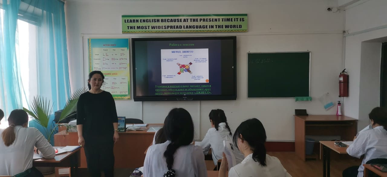 Топтық, фронтальды және жеке жұмыс түрлері және проблемалық сұрақтар қою және оларға жауап іздеу сияқты жұмыс әдістері қолданылды.