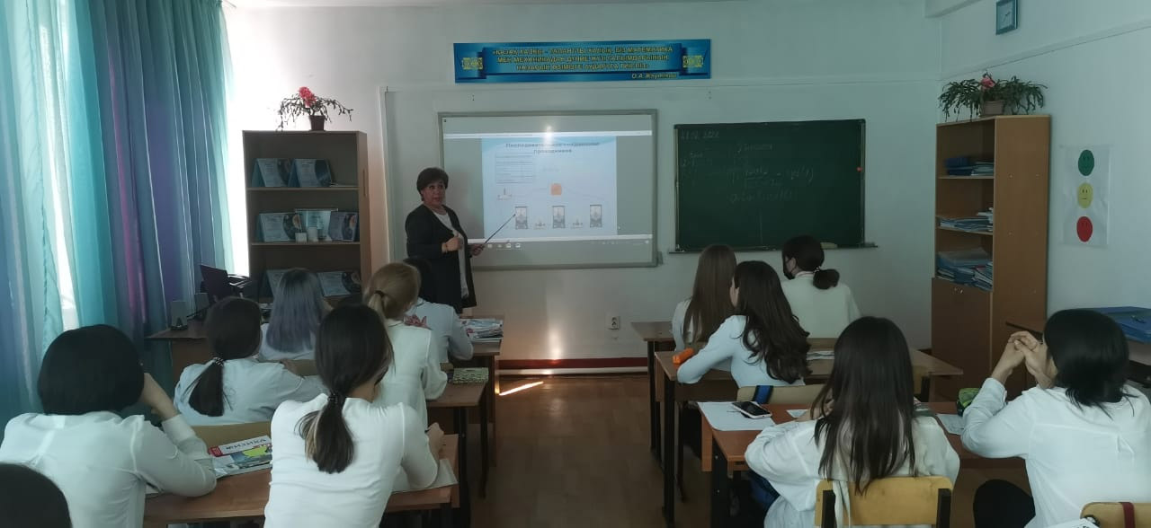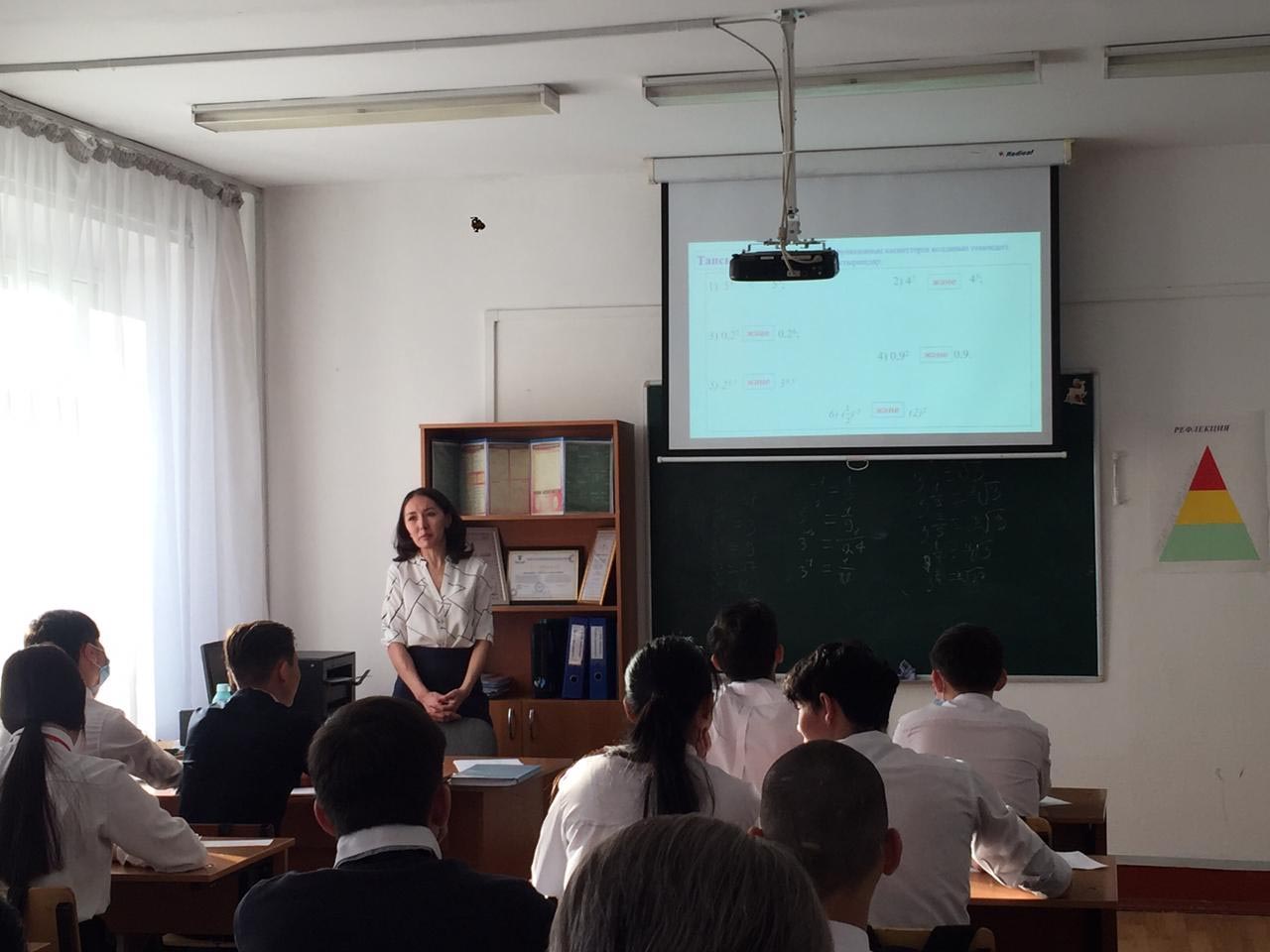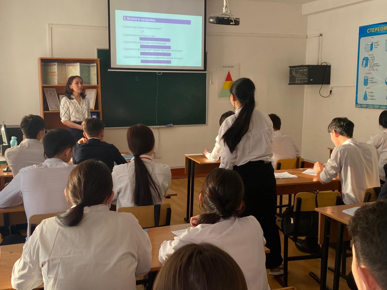 22.02.2022 ж. – А.М.Жаканова математика пәнінің оқытушысы «Көрсеткіштік функция, оның қасиеттері және графигі» тақырыбында ашық сабақ өткізді. Оқу сабағы әдістемелік талаптарға сай құрастырылған. Мұғалім сабақта проблемалық оқыту технологиясын қолданады. Проблемалық жағдайды тұжырымдай отырып, мұғалім студенттерге сабақтың міндеттерін өздері тұжырымдауға мүмкіндік беретін оқу қызметін жандандыру әдістерін қолданады. Сабақ жаңа материалды меңгеру түрінде өтті. Мұғалім оқытудың әртүрлі формалары мен әдістерін қолданады: проблемалық-ізденіс, сөздік-көрнекілік, АКТ қолдану; өзіндік жұмыс әдістерін пайдалану. Зерттелген материалды бекіту кезінде студенттердің өздері алған білімдерін өзара тексеру және өзін-өзі тексеру қолданылады. Мұғалім оқытуда оқушылардың дайындық деңгейін ескере отырып, сараланған тәсілді қолданады (кейбір оқушылар тапсырманы мұғаліммен бірге орындайды, кейбіреулері күрделіліктің бірнеше деңгейінде құрастырылған нұсқалар бойынша өз бетінше орындайды).