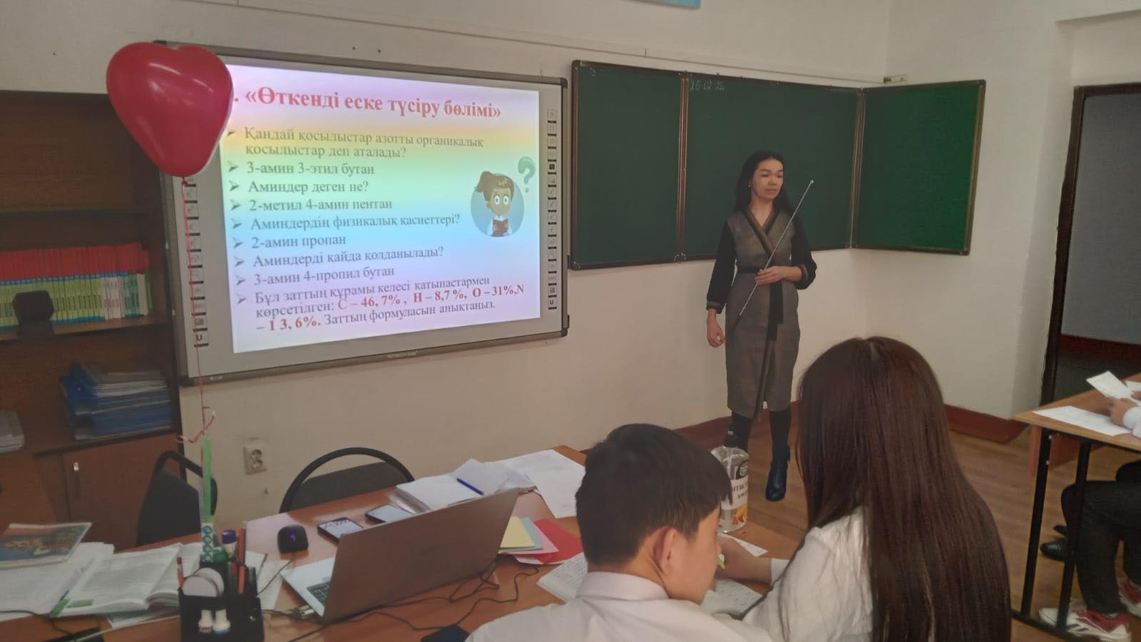 25.02.2022 ж. – химия  оқытушысы А.Ж. Каримбаева «Аминқышкылдардың құрамы мен қасиеттері» тақырыбында ашық сабақ өткізді.  Мазмұны мен формасы бойынша материалды ұсыну заманауи талаптарға сай келеді. Сабақтың басталуын ұйымдастыру оқушылардың жағымды көңіл-күйіне ықпал етті, сабақтың мақсаты қойылды. Негізгі кезеңге дайындық оқушыларды қызықтыра түсті. Бұл кезең тікелей серпінді, белсенді өтті; оқушылардың жауаптары мазмұнды болды; оқытушының тұжырымдары бір қорытындыдан екіншісіне түсінікті әрі қалыпты өтті.