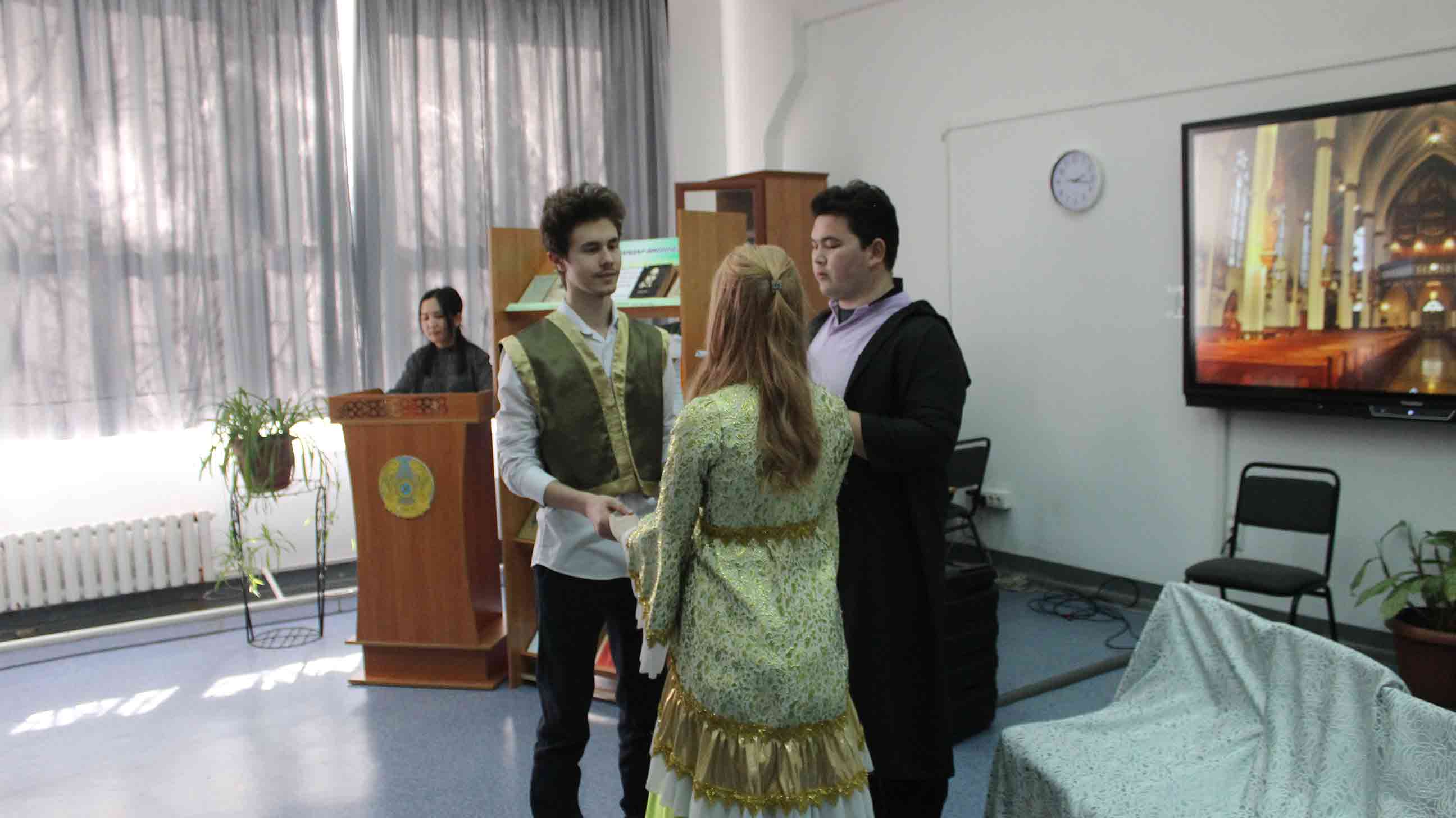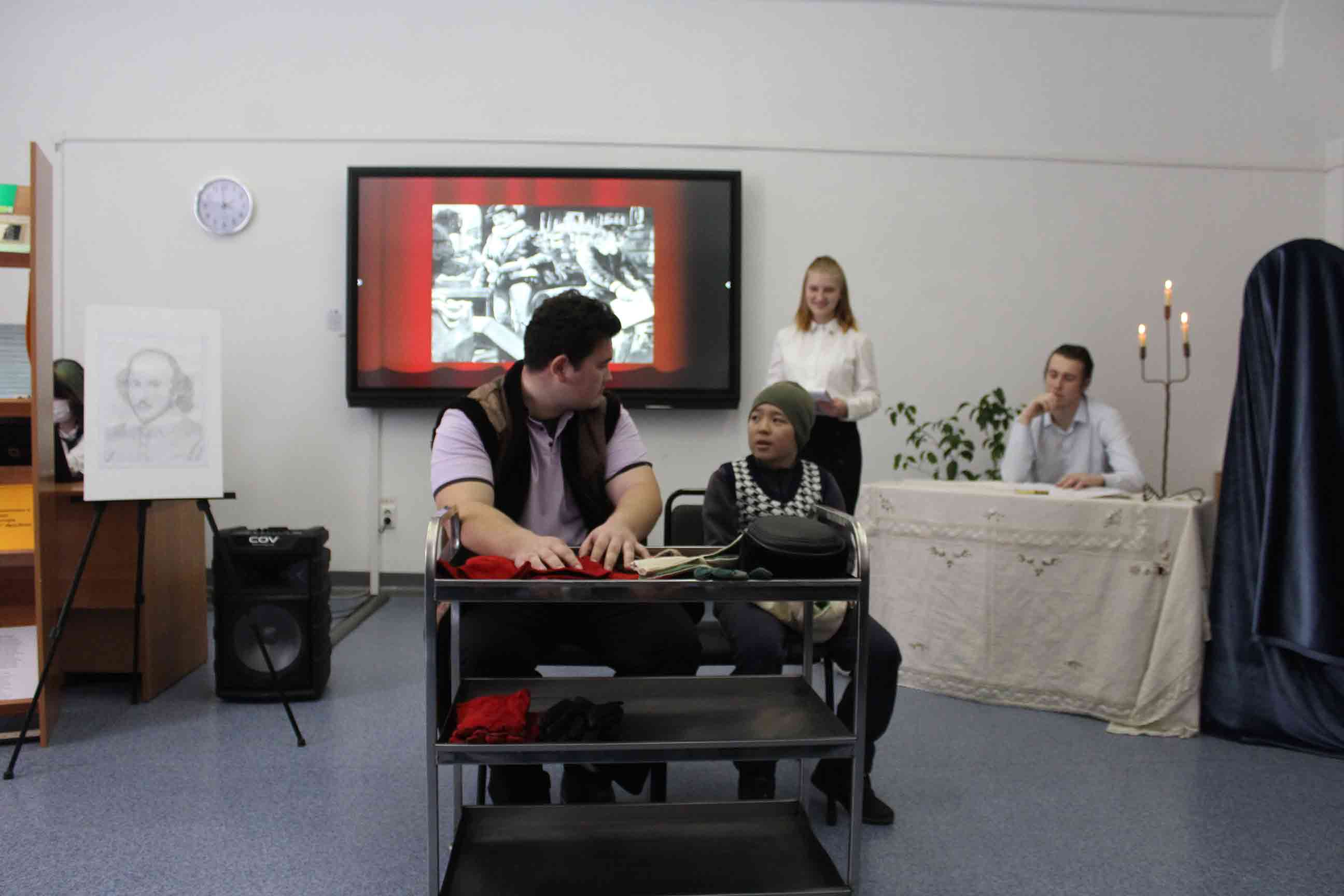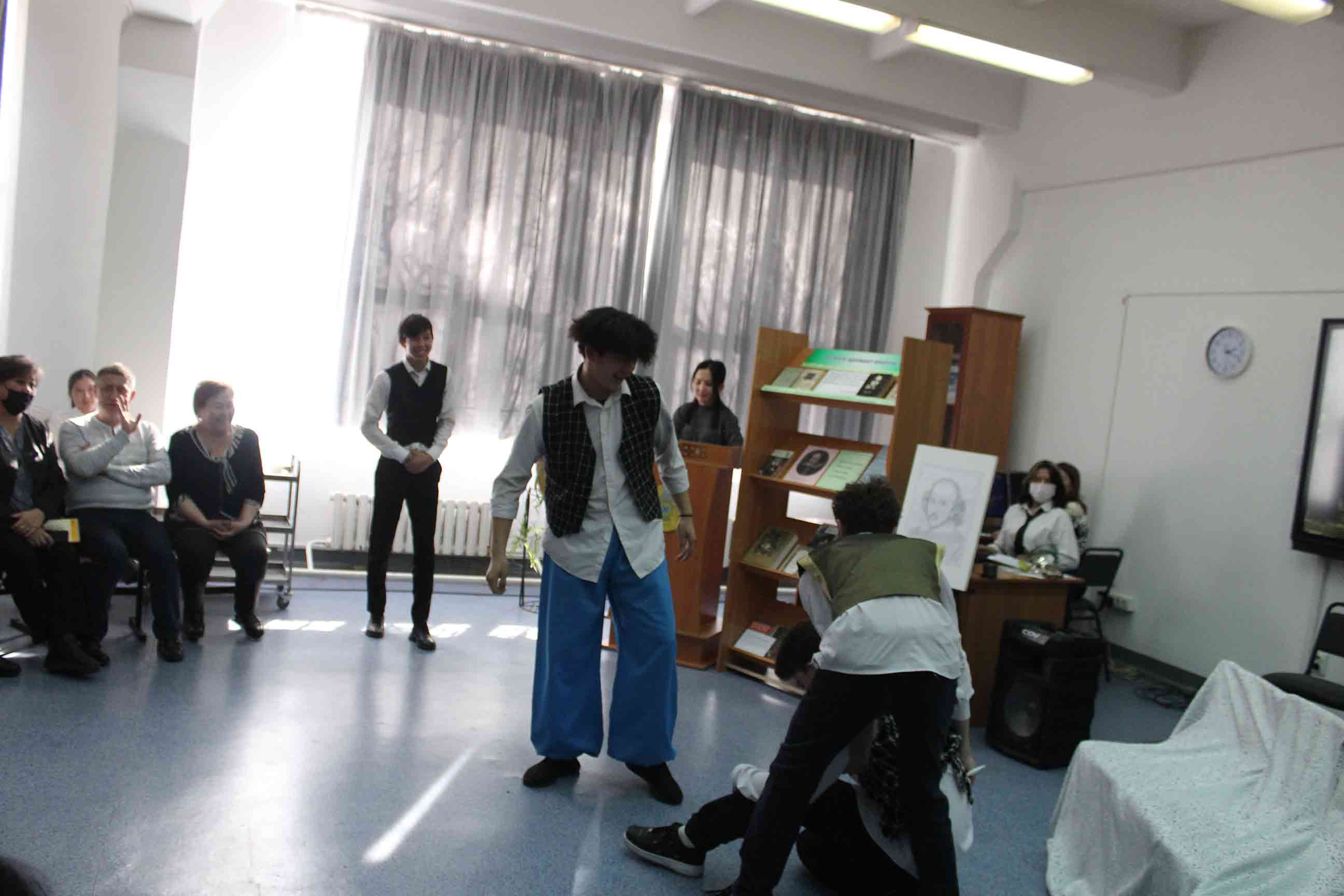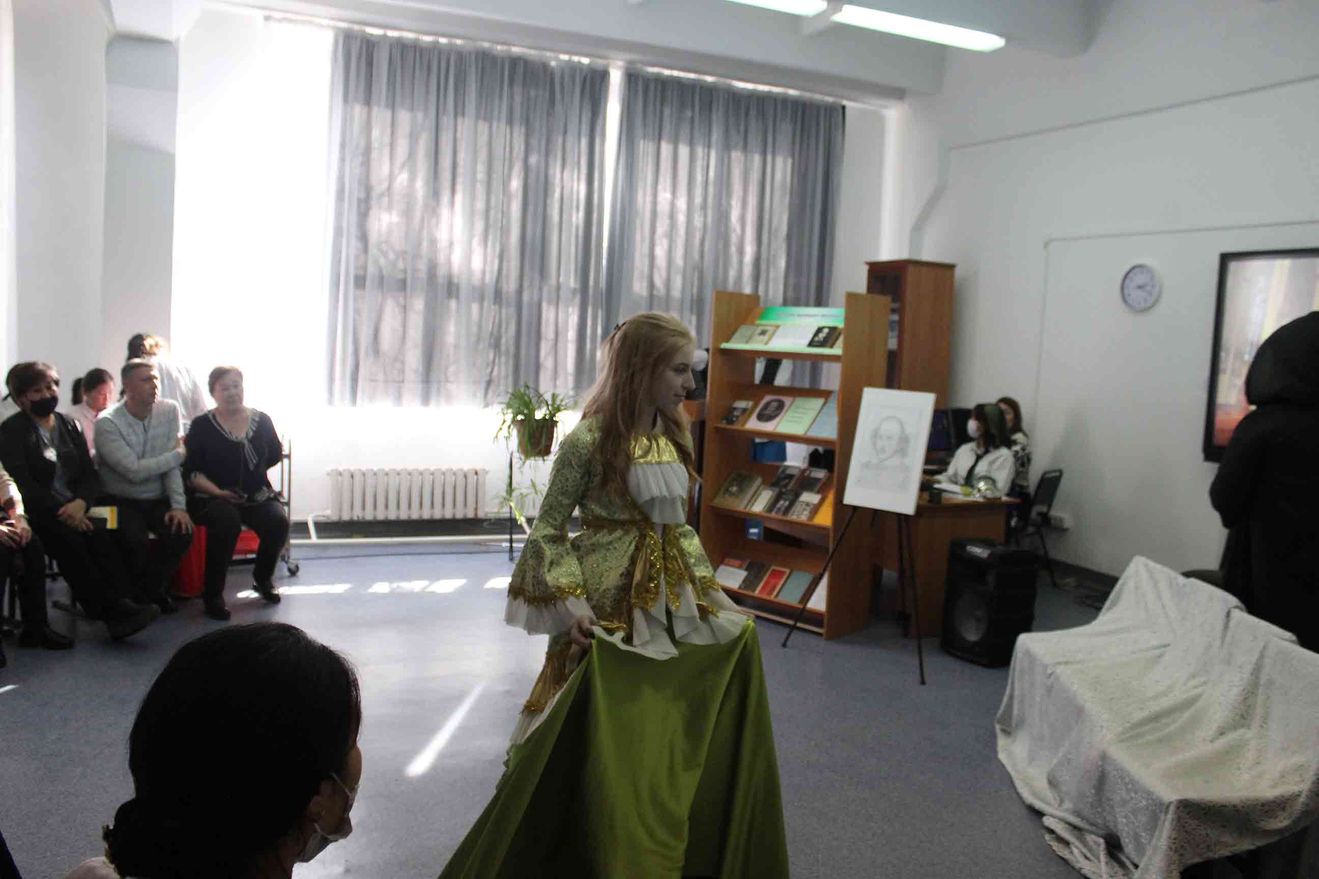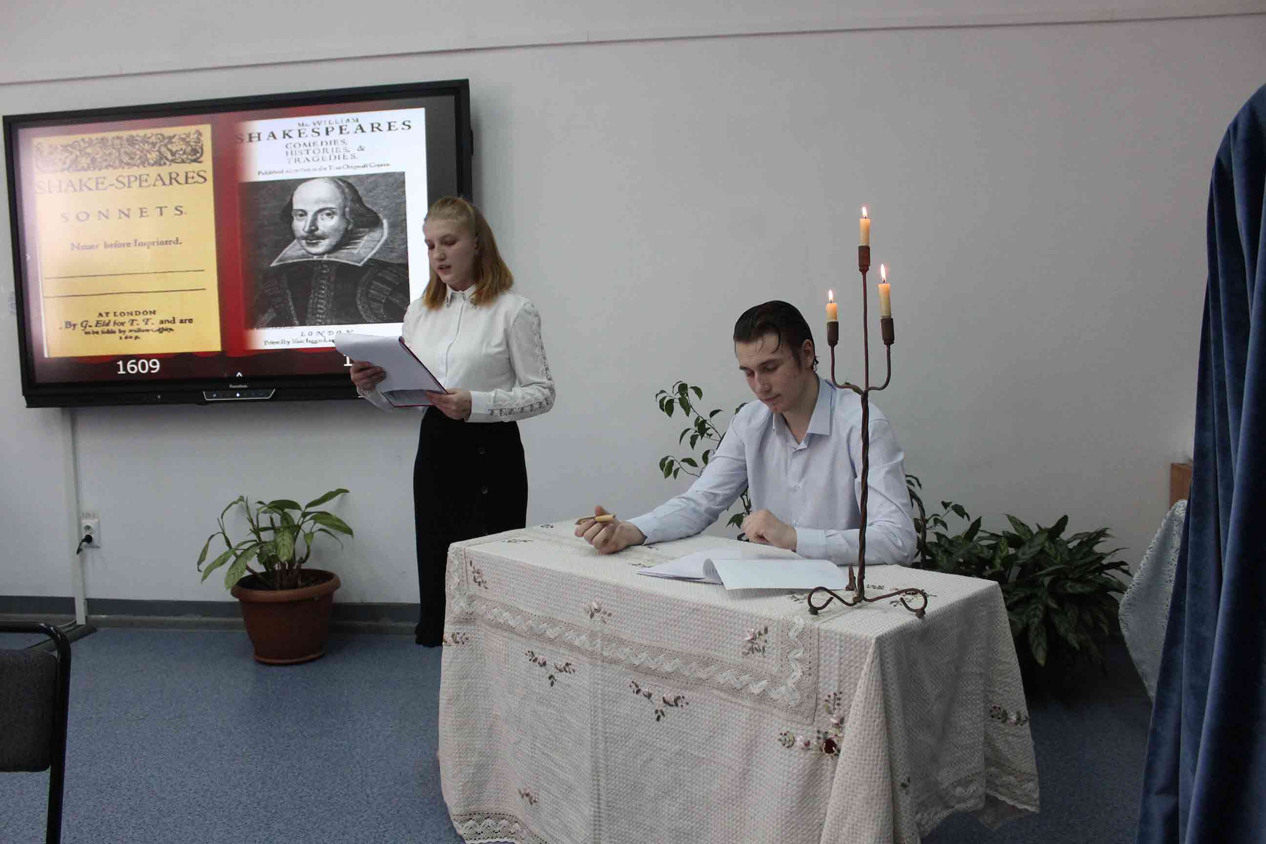 25.02.2022-ағылшын тілі оқытушылары А.Т.Ускембаева, А.А.Нуртазаева ағылшын тілі үйірмесінің жұмысы бойынша «Shakespeare and his century» тақырыбында шығармашылық есеп өткізді. Бұл іс-шараның мақсаты оқушылардың ой-өрісін кеңейту және шет тілі мен елтану ғылымына деген қызығушылығын арттыру болды. Оқушылардың жұмыстары, презентация сияқты, мұғалім мен студенттерге ағылшын тіліндегі сыныптан тыс жұмыстарда мүмкіндіктер ашады, өйткені олар бағдарламалық материалдан асып, «В.Шекспир» тақырыбындағы білімдерін тереңдетуге көмектеседі. Бұл ұлы ағылшын драматургі, жарқын комедиялардың, трагедиялардың, лирикалық-философиялық сонеттердің авторы шығармашылығына тереңірек енуге мүмкіндік береді. Іс-шараны дайындау кезінде оқушылардың жас әлеуетіне сәйкес келетін және олардың үлкен қызығушылығын тудыратын шығармалар ғана таңдалды.