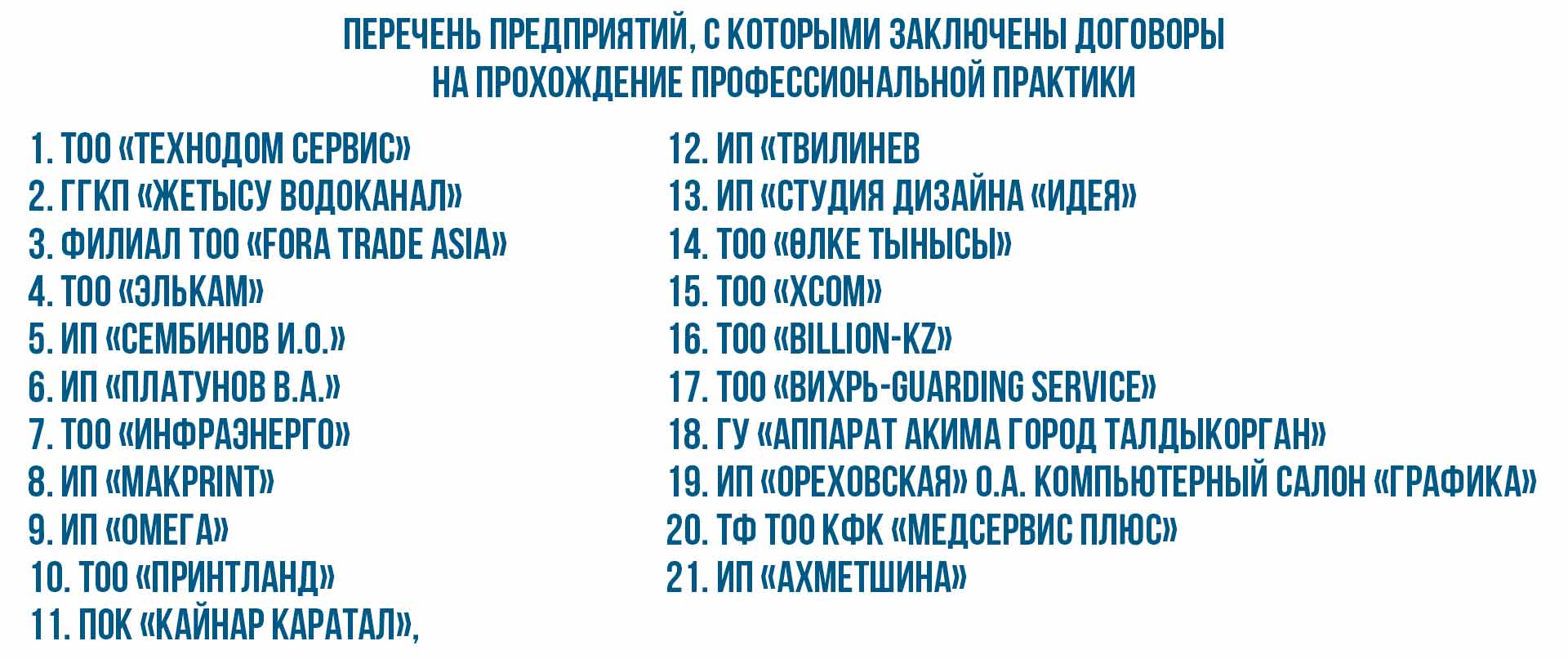 ПЕРЕЧЕНЬ ПРЕДПРИЯТИЙ НА ПРОХОЖДЕНИЕ ПРОФЕССИОНАЛЬНОЙ ПРАКТИКИ