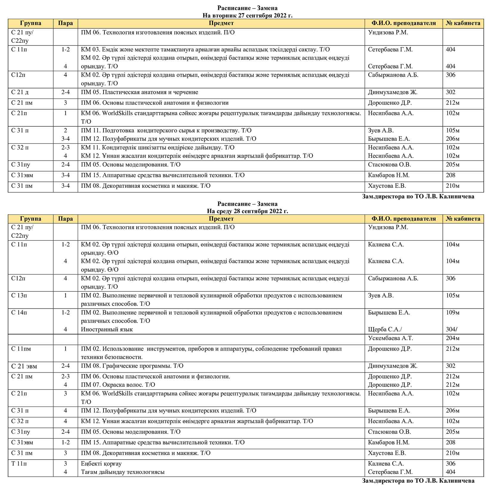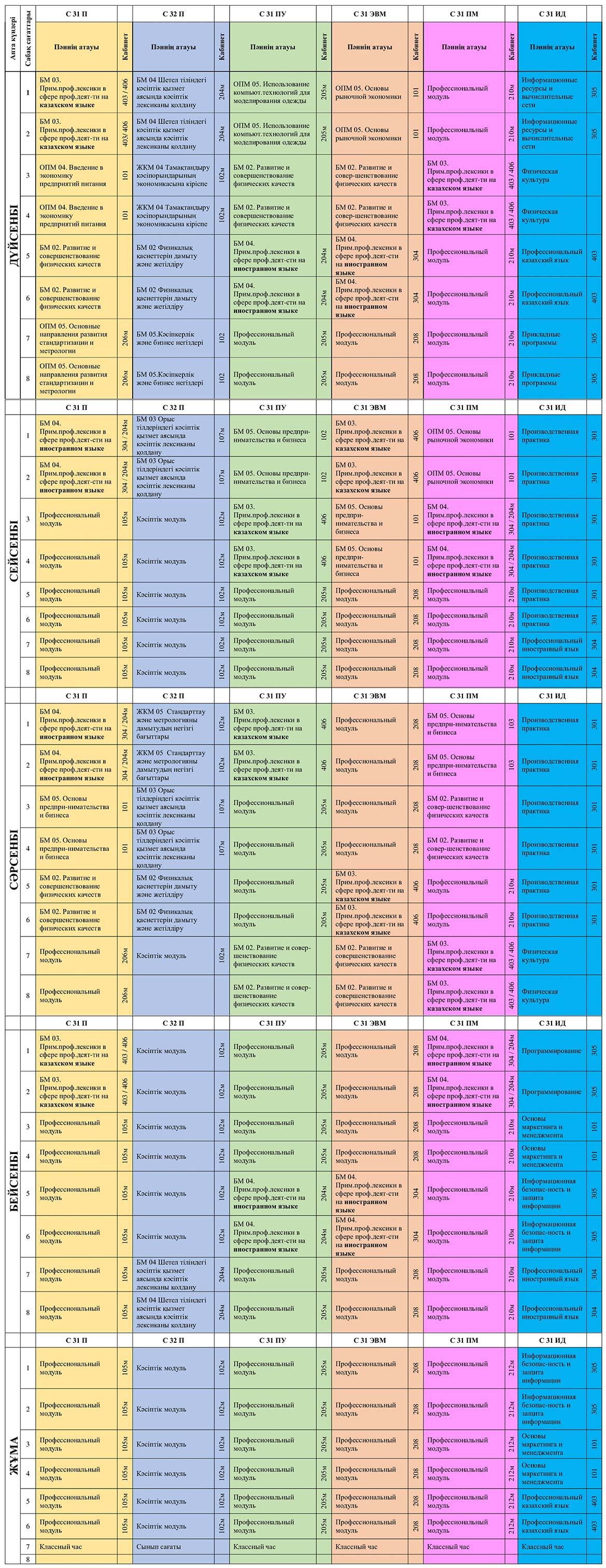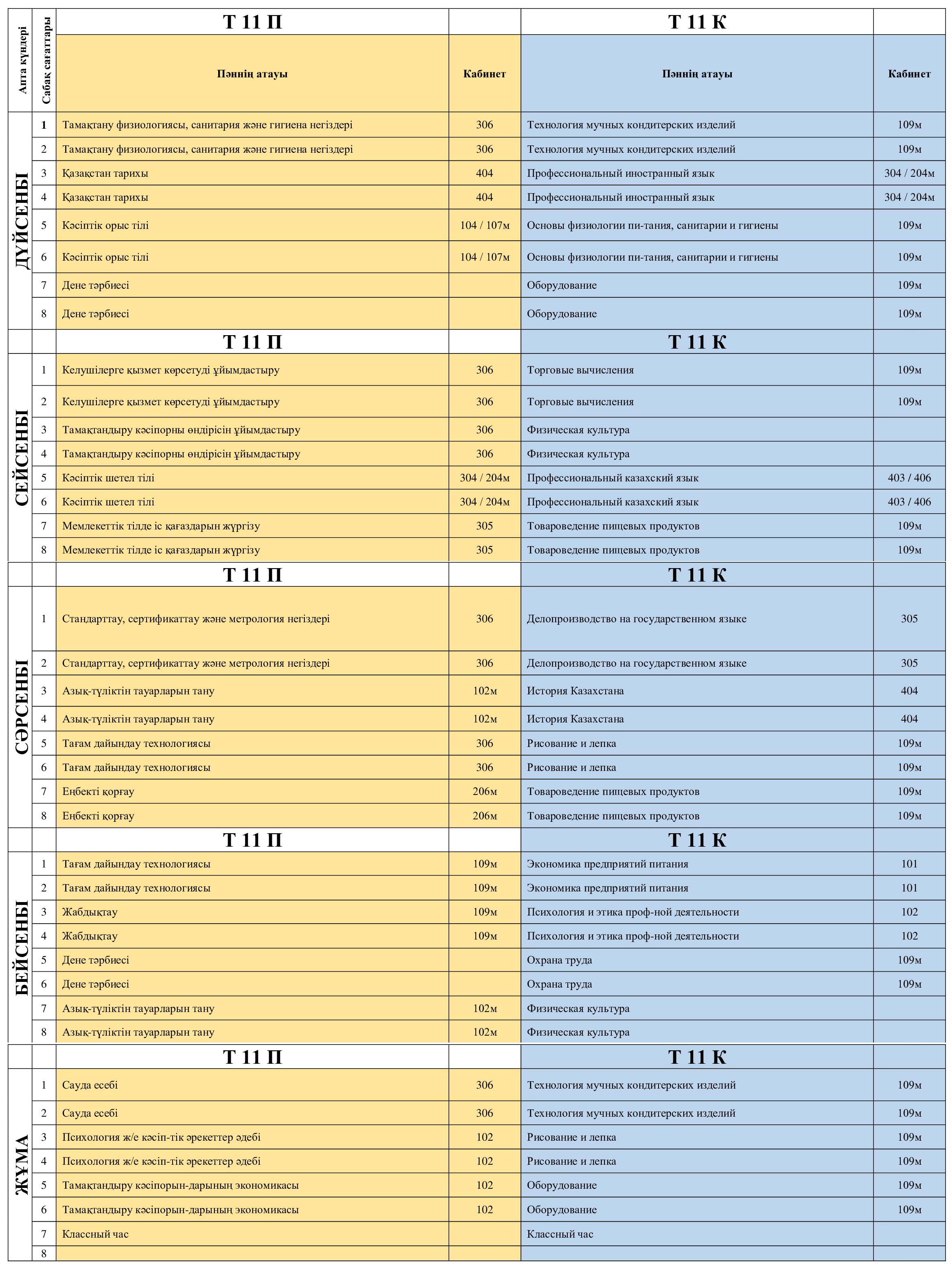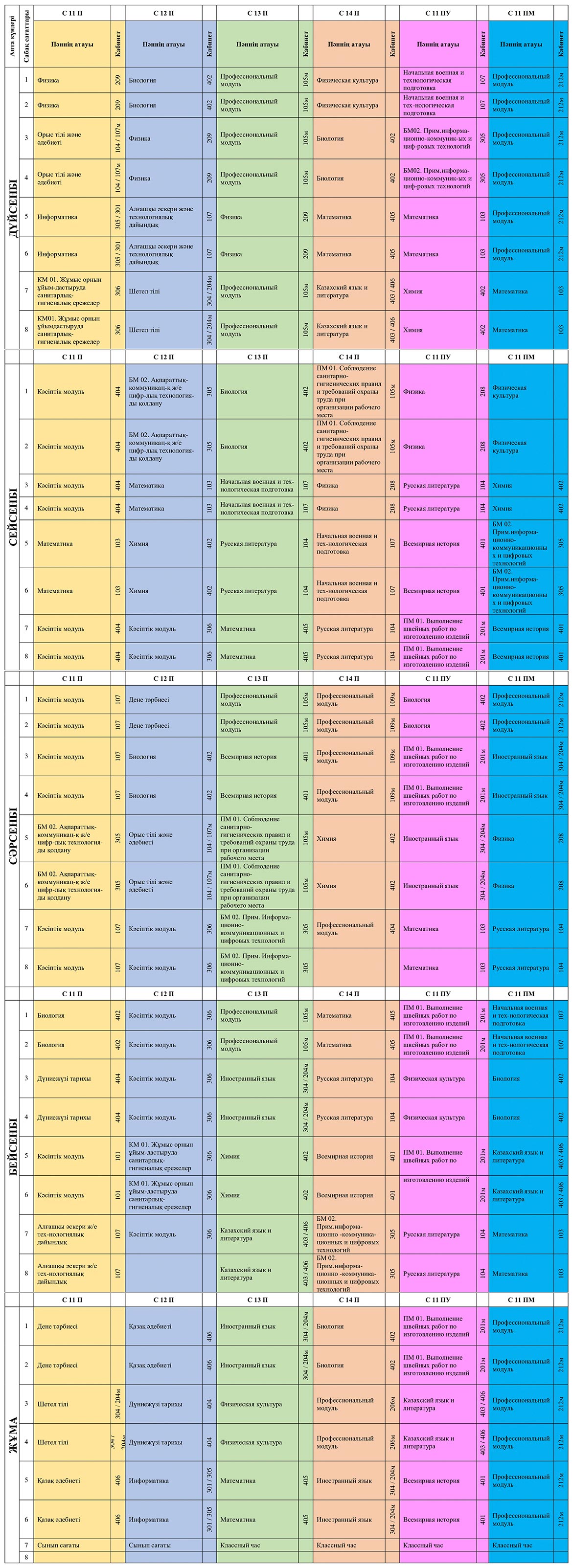САБАҚ КЕСТЕСІ | ЗАМЕНА | 1 - ТОҚСАН | ПОЛУГОДИЕ