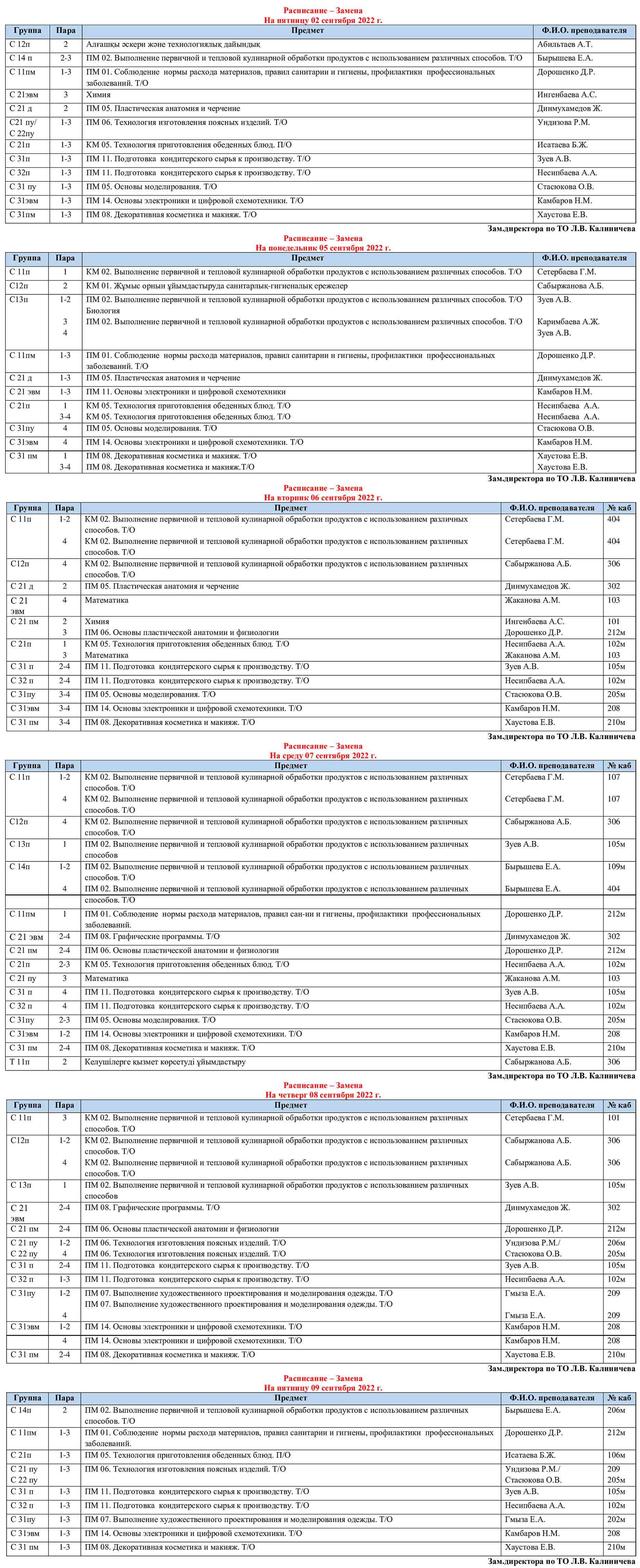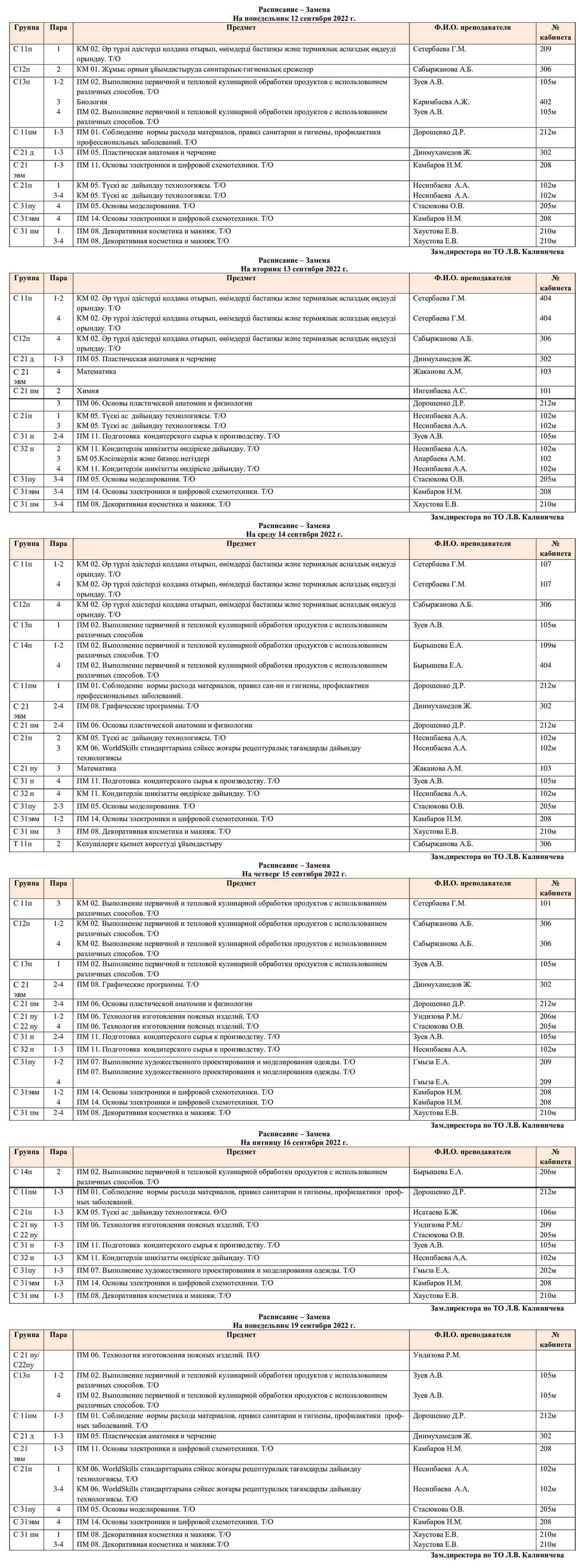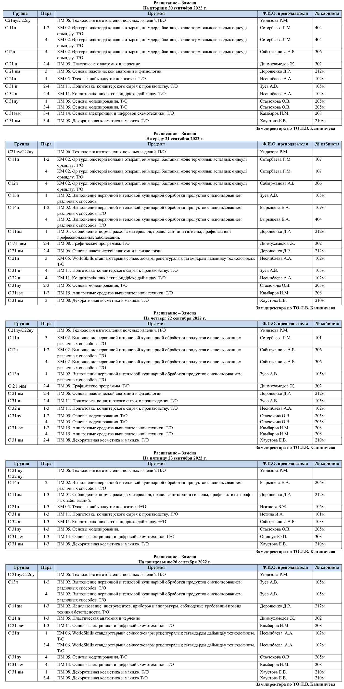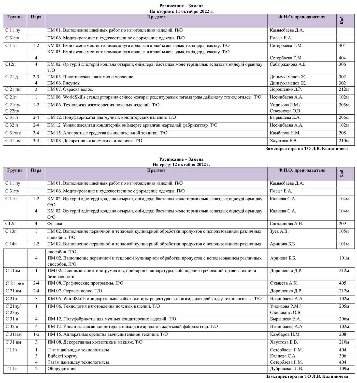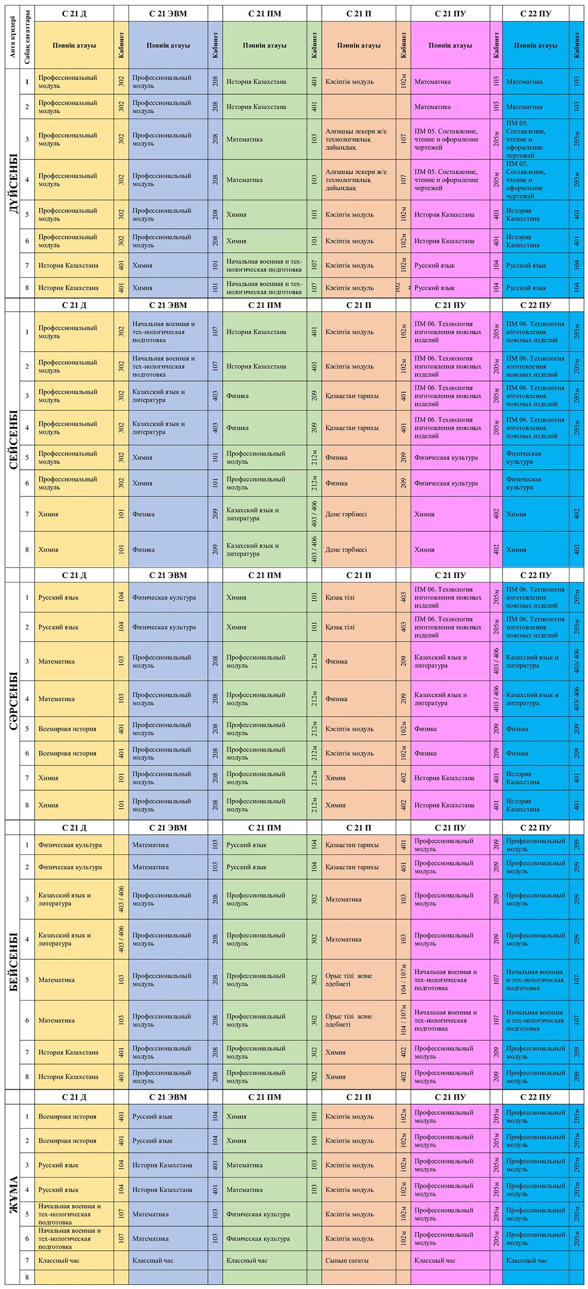 САБАҚ КЕСТЕСІ | ЗАМЕНА | 1 - ТОҚСАН | ПОЛУГОДИЕ