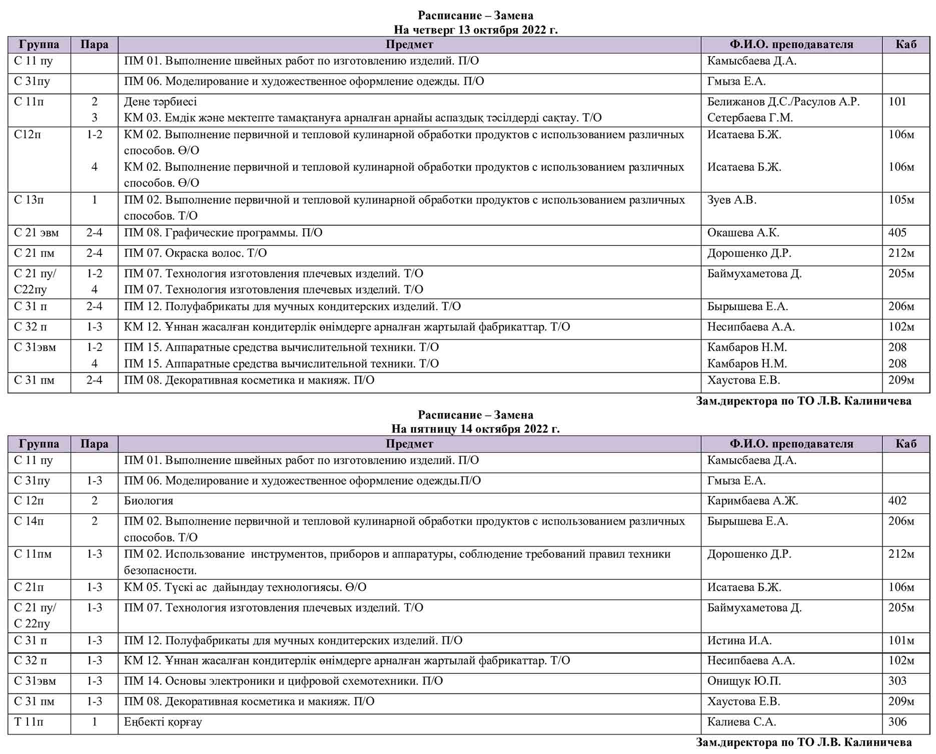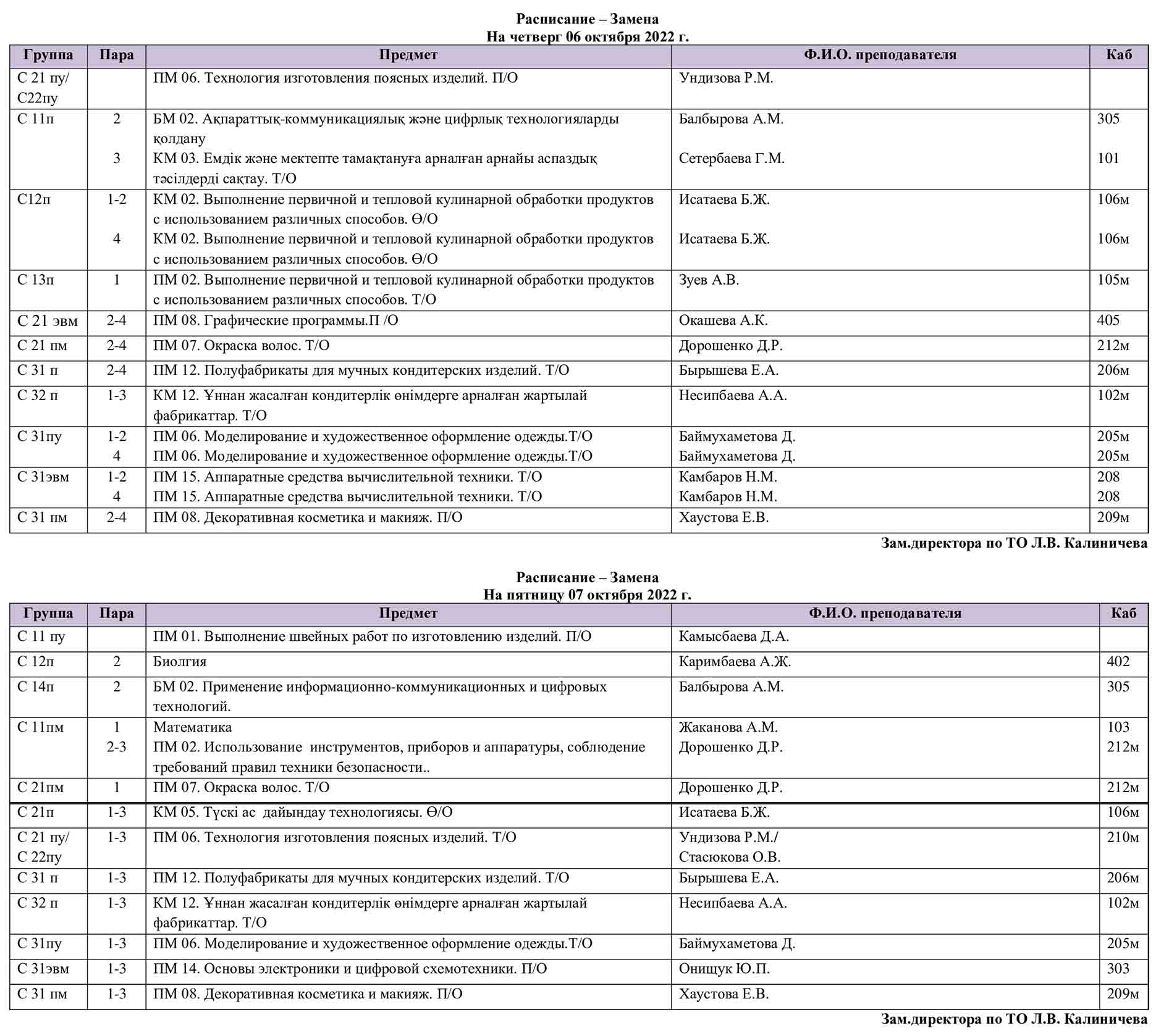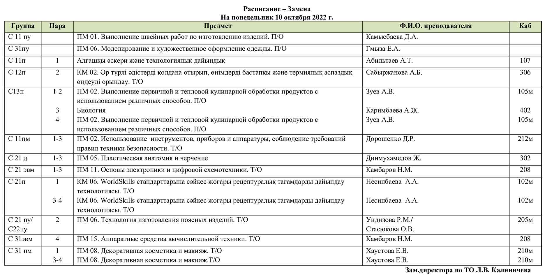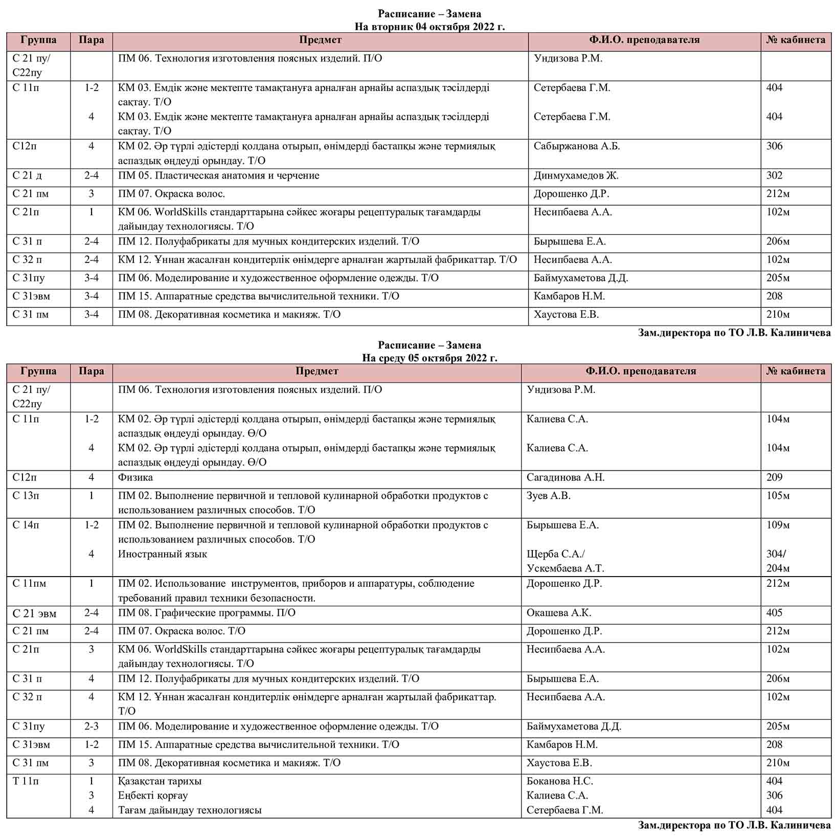САБАҚ КЕСТЕСІ | ЗАМЕНА | 1 - ТОҚСАН | ПОЛУГОДИЕ